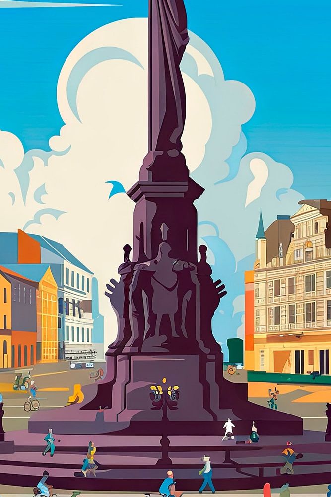 Unter einem strahlend blauen Himmel erhebt sich majestätisch ein warziger Monument, umgeben von bunten Autos, die die lebhafte Atmosphäre Rigas unterstreichen. Historische Gebäude rahmen den Platz ein und verleihen ihm einen charmanten, künstlerischen Flair. Das geschäftige Treiben der Stadt pulsiert, während Radfahrer und Passanten harmonisch in diesem urbanen Schauspiel miteinander verwoben sind.