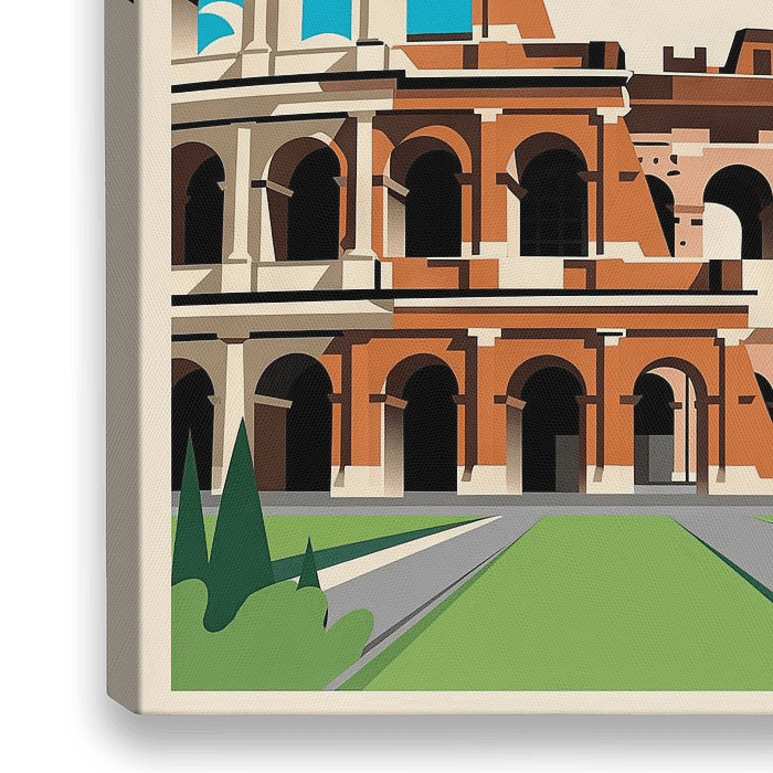 Majestätisch erhebt sich der Kolosseum, ein Symbol der ewigen Stadt, umgeben von sanften grünen Landschaften und strahlend blauem Himmel. Die markante Erkerarchitektur und die imposanten Bögen erzählen Geschichten vergangener Zeiten und laden zu einer imaginären Reise durch die Geschichte Roms ein. Ein wahrhaft ikonisches Motiv, das zum…