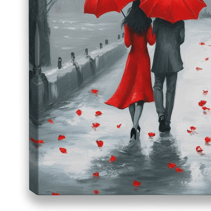 Bestelle diese Malerei Romantischer Spaziergang im Regen von Poster Art Shop als Reproduktion auf Leinwand, Alu-Dibond, als Poster, Fototapete oder Acrylglasbild.