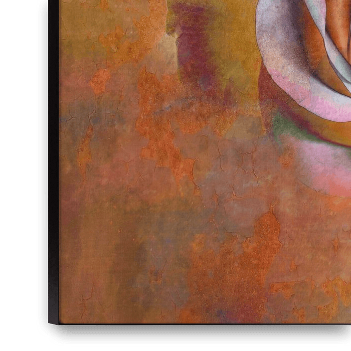 Fotografie von Rosen, digital bearbeitet mit rostroter Textur was der Rose einen nostalgischen Anstrich verleiht....