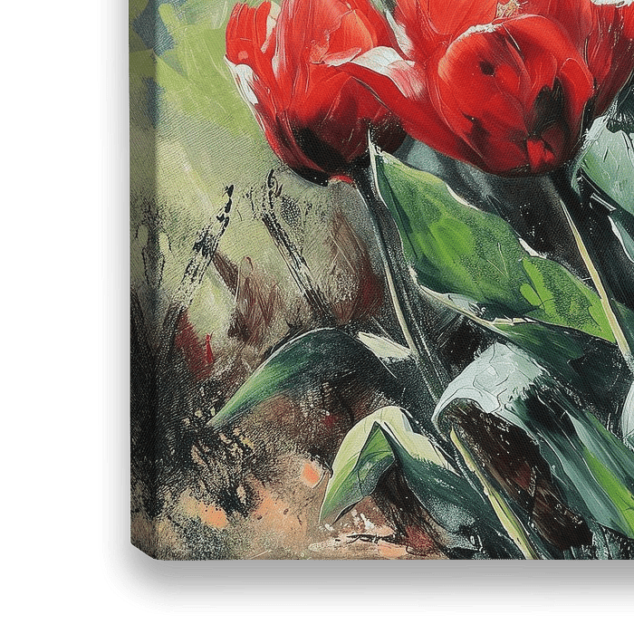 Bestelle dieses Blumen-Wandbild Rote Tulpen von Blickfänger Gemälde als Reproduktion auf Leinwand, Alu-Dibond, als Poster, Fototapete oder Acrylglasbild.