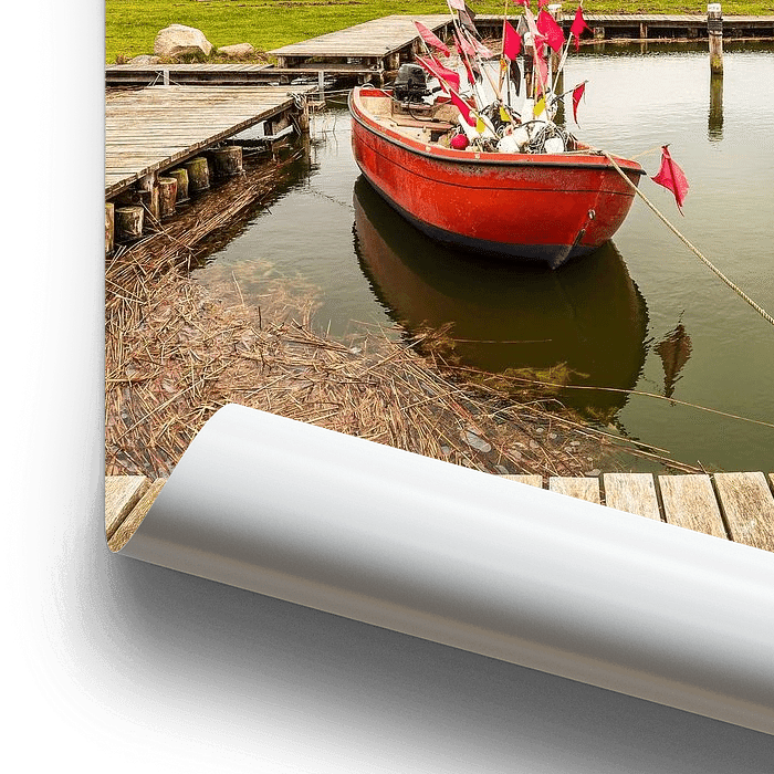 Bestelle das Foto Rotes Fischerboot im Hafen von Althagen auf dem Fischland-Darß von Rico Ködder als Reproduktion auf Leinwand, Alu-Dibond, als Poster, Fototapete oder Acrylglasbild.