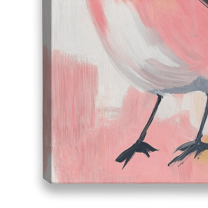 Rotkehlchen | Ausdrucksstarke Vogelkunst - Dieses Vogelgemälde zeigt ein farbenfrohes und ausdrucksstark gemaltes Rotkehlchen mit leuchtenden Pink-, Orange- und Grüntönen, akzentuiert durch weiche, abstrakte Hintergrundstriche in Weiß und Beige.