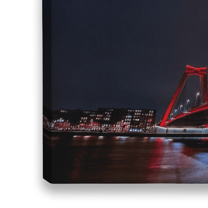 Die Willemsbrug in Rotterdam ist eines der Wahrzeichen von Rotterdam. Abends und nachts ist sie wegen ihrer schönen leuchtend roten Farbe vielleicht das bekannteste Wahrzeichen von Rotterdam. Die stimmungsvollen Lichter der Laternenpfähle schmücken die Brücke vom Anfang bis zum Ende (auf der gegenüberliegenden Seite) der Brücke.