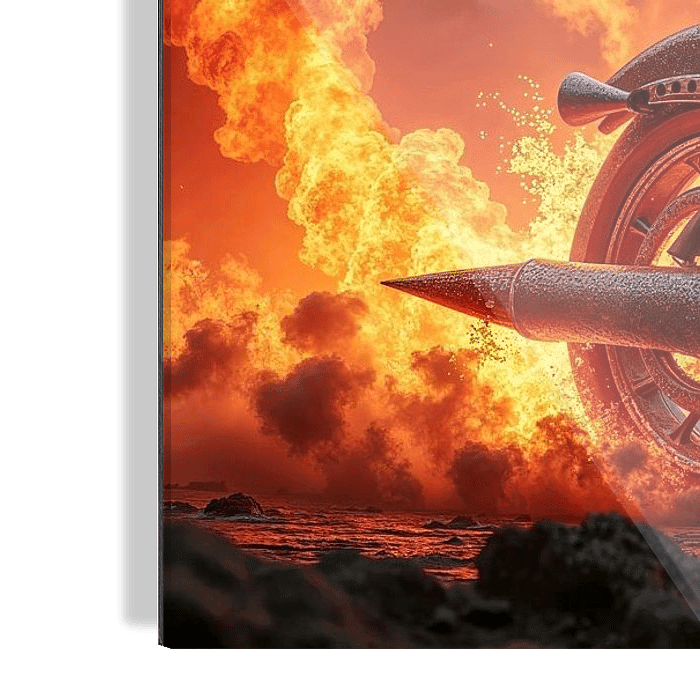 In höchster Druckqualität wird dieses Bild zu einem exklusiven Sammlerstück – ein Meisterwerk, das Tod, Feuer und Mythos auf einer einzigen Höllenmaschine vereint.