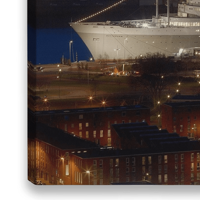 Die wunderschön beleuchtete SS Rotterdam am Abend