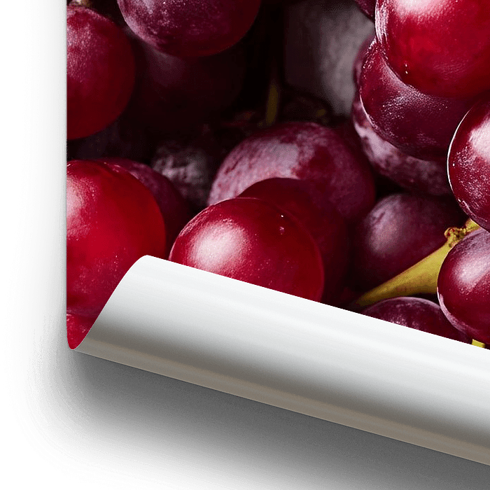 Dieses farbenstarke Food-Art-Motiv zeigt eine Nahaufnahme frischer roter Trauben in all ihren natürlichen Nuancen – von hellem Rubinrot bis hin zu tiefem Bordeaux. Die glänzenden Oberflächen, zarten Reifschichten und feinen Stiele verleihen dem Bild eine lebendige Textur und machen die Früchte fast greifbar. Die kompositorische Dichte…
