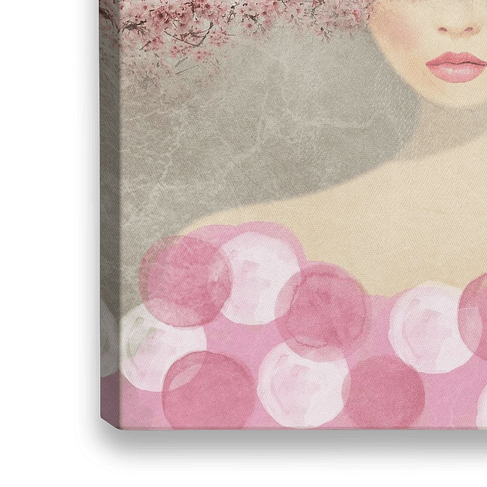 Illustratives, surreales Porträt mit einer Kirschblütenfrisur