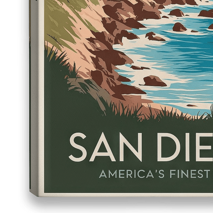 Bestelle dieses Landschafts-Wandbild San Diego Vintage Travel Poster von Poster Art Shop als Reproduktion auf Leinwand, Alu-Dibond, als Poster, Fototapete oder Acrylglasbild.