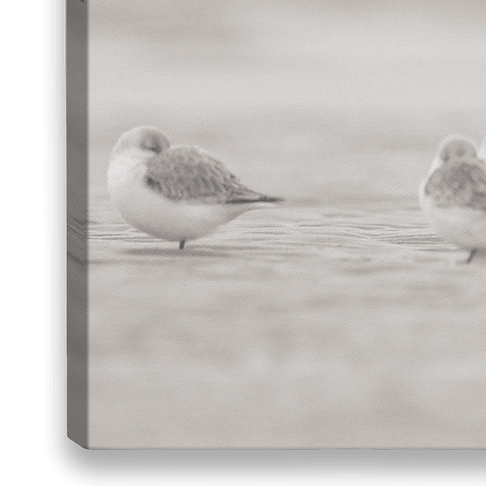 Bestelle dieses Vögel Wandbild Sanderlinge am Strand von Menno Schaefer als Reproduktion auf Leinwand, Alu-Dibond, als Poster, Fototapete, ArtFrame oder Acrylglasbild, maßgefertigt in höchster Qualität.