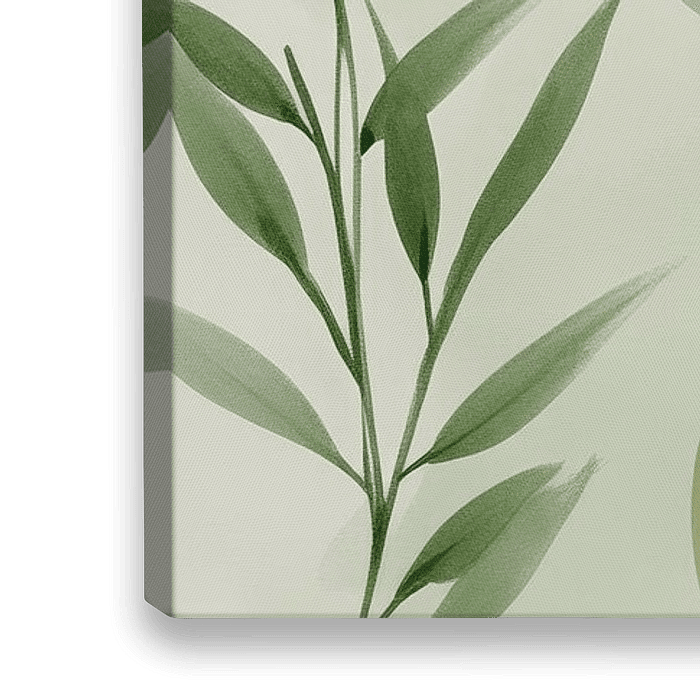 Sanfte Grüntöne und organische Formen verschmelzen zu einem harmonischen Komposition, die Ruhe und Frische ausstrahlt. Die geschwungenen Blätter und sanften Kreise erwecken den Eindruck eines lebendigen Gartens, ideal, um in einer Küche oder einem Wohnzimmer eine entspannte Atmosphäre zu schaffen. Ein echter Blickfang, der die Natur ins Innere holt.
