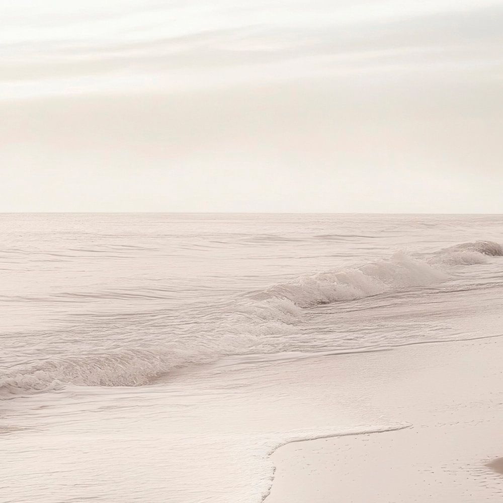 Ein sanfter Übergang von Sand zu Wasser, wo die Wellen sachte die Küste umarmen. Der Himmel, in zarten Grau- und Beigetönen, vermittelt eine ruhige Melancholie. Jedes Element strahlt eine zeitlose Stille aus, während die sanfte Brandung das Geheimnis des Meeres ins Ohr flüstert. Ein Ort der Reflexion und des inneren Friedens.