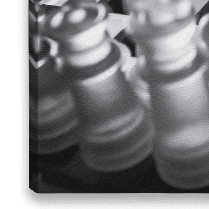 Bestelle dieses Stilleben Schach Figuren auf Glas Spielbrett von Andreea Eva Herczegh als Reproduktion auf Leinwand, Alu-Dibond, als Poster, Fototapete oder Acrylglasbild.
