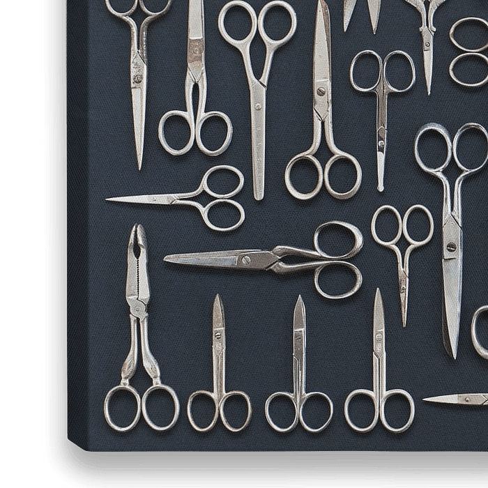 Bestelle dieses Stilleben Schere Kollektion von Floris Kok als Reproduktion auf Leinwand, Alu-Dibond, als Poster, Fototapete oder Acrylglasbild.