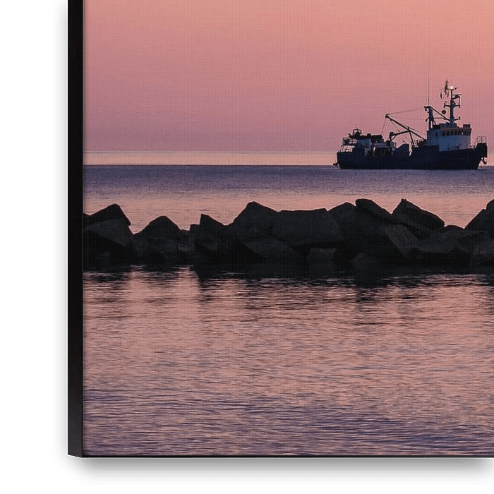 Bestelle das Foto Schiffe an der Küste der Ostsee im Sonnenuntergang von Rico Ködder als Reproduktion auf Leinwand, Alu-Dibond, als Poster, Fototapete oder Acrylglasbild.
