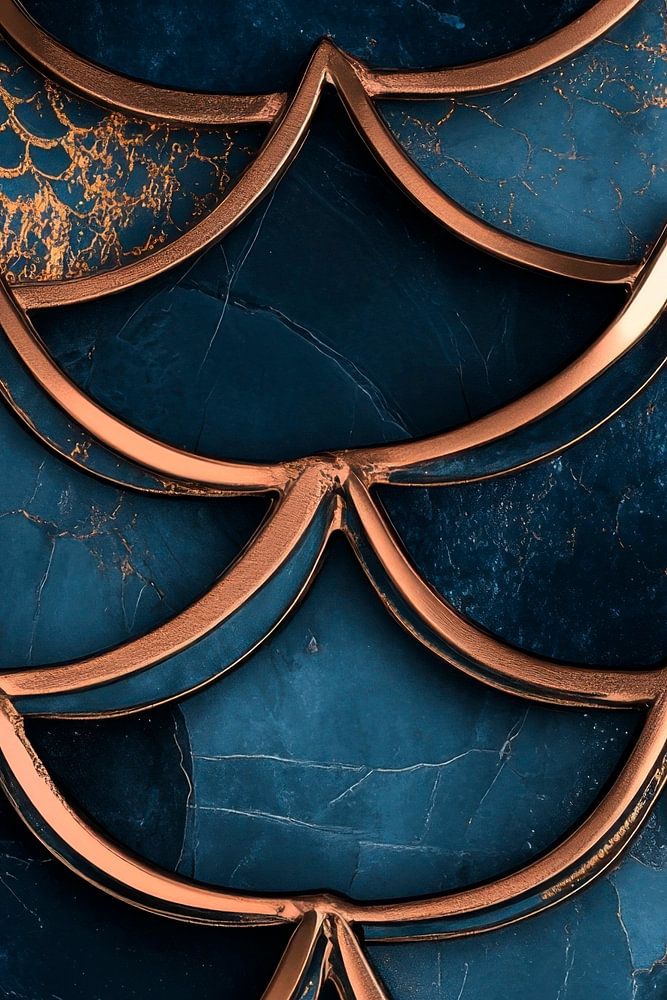 Elegant geschwungene Formen in tiefem Blau, die an der Oberfläche schimmern wie die Wellen des Meeres. Goldene Akzente durchbrechen die kühle Farbpalette und verleihen dem Gesamtbild eine edle Note. Diese frostigen Schuppen scheinen geheimnisvolle Geschichten aus der Tiefe der Ozeane zu bergen und laden zur träumerischen Entdeckung ein.