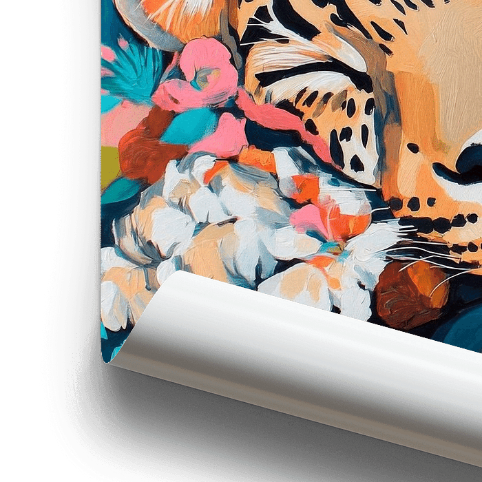 Über „Schlafender Leopard im Blumenmeer“ von Poster Art Shop