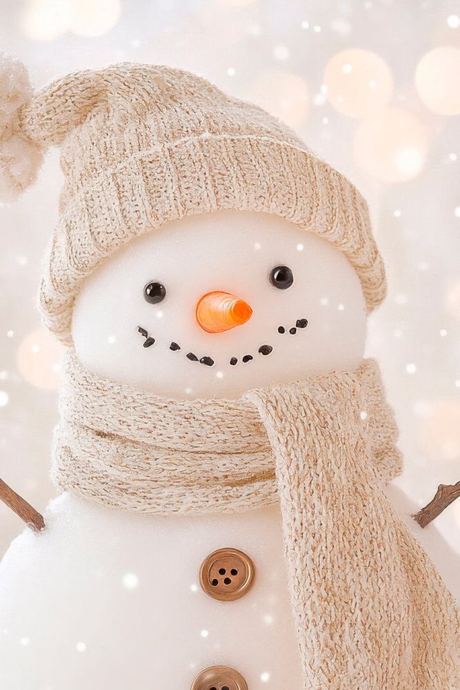 Inmitten von sanften Schneeflocken strahlt ein charmanter Schneemann mit seinem weichen, beige Farben und dem lustigen Bommelmütze. Sein schelmisches Lächeln und die leuchtend orangefarbene Karottennase verleihen ihm Persönlichkeit, während der kuschelige Schal ihn warmhält. Ein wahrhaft winterlicher Traum aus Frost und Freude!