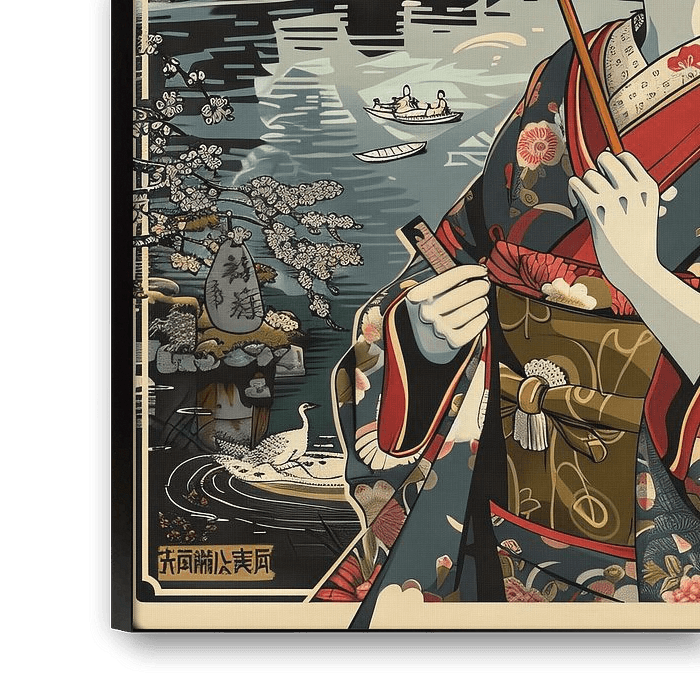 "Schöne junge Frau im Ukiyo-Stil" ist eine Darstellung, die die Eleganz und Anmut einer Frau im traditionellen japanischen Ukiyo-Stil einfängt. In diesem Kunstwerk verschmelzen traditionelle Techniken mit einem zeitlosen ästhetischen Ausdruck. Die zarte Linienführung und die subtilen Farben verleihen dem Porträt eine ruhige und doch faszinierende Präsenz, die die Betrachter in die verträumte Welt des Ukiyo entführt.