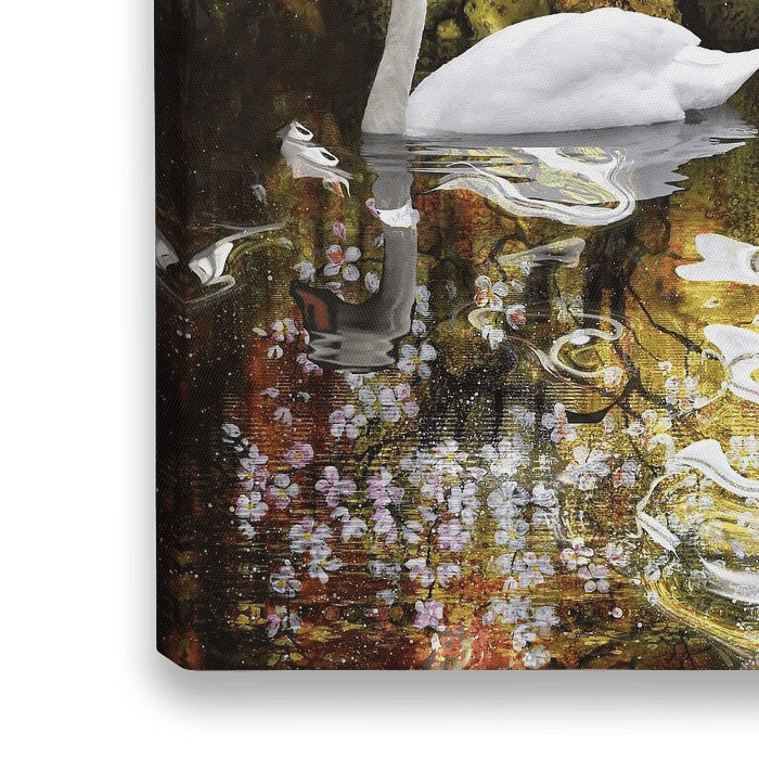 Collage von eigener Acrylarbeit - Bluetenzauber mit Schwanenfoto, Kirschblüte, Schwan, Wasservogel, Asiatisch, Japan, Spiegelung, digitalart, dekorativ, Schönheit, Wasserspiegelung, Jahreszeiten, Frühling, weiss, bunt, asiatisch, Kirschblüten, zauberhaft, Digital Art Poster, Digital Art märchenhaft, Harmonie, Ambiente Kinderzimmer,…
