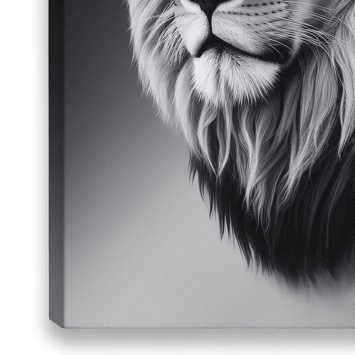 Dieses beeindruckende Design zeigt ein detailliertes und realistisches Porträt eines mächtigen Löwen. Der Schwerpunkt liegt auf der Mähne und dem ausdrucksstarken Gesicht, wobei jedes einzelne Haar sorgfältig wiedergegeben wird. Der Schwarz-Weiß-Stil verstärkt den dramatischen Effekt und schafft einen zeitlosen Look. Dieses Kunstwerk…