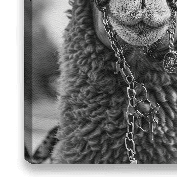 Ein detailliertes schwarz-weißes Bild eines Kamels, das einen Strohhut und runde Brillen trägt. Der Ausdruck ist humorvoll und einzigartig.