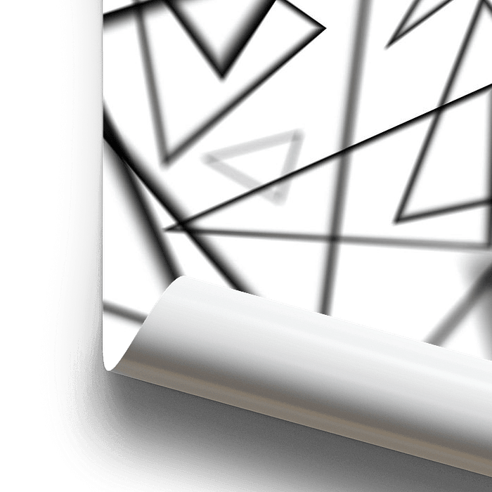 Schwarze Dreiecke mit Schärfentiefe auf weißem Untergrund.