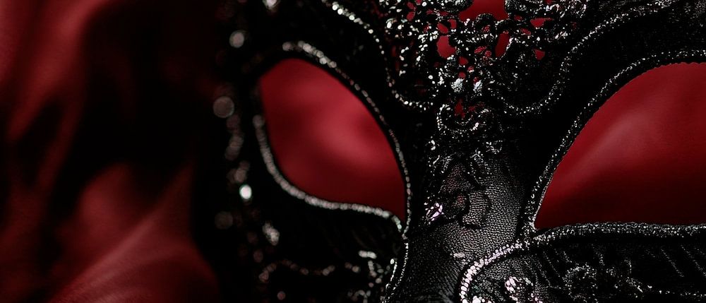Ein geheimnisvoller Charme entfaltet sich in der eleganten Verbindung von tiefem Rot und filigranem Schwarz. Die kunstvoll verzierte Maske, die neben dem samtigen Stoff liegt, lädt zu Träumereien und Geschichten ein. Ideal für ein stilvolles Wohnzimmer, schafft dieses Kunstwerk eine Atmosphäre von Raffinesse und Intrige, perfekt für gesellige Abende.