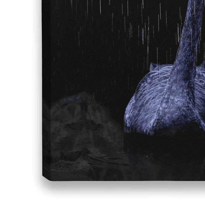 Bestelle das Foto Schwarzer Schwan (Regen) von Guido Heijnen als Reproduktion auf Leinwand, Alu-Dibond, als Poster, Fototapete oder Acrylglasbild.