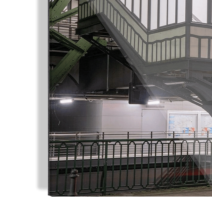Leuchtspuren an der historischen Haltestelle Völklinger Straße der Wuppertaler Schwebebahn, Bergisches Land, Deutschland