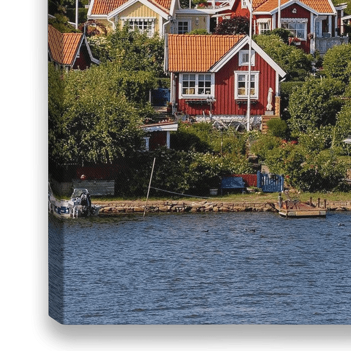 Bestelle dieses Landschafts-Wandbild Schwedische Sommerhäuser an der Küste von Adelheid Smitt als Reproduktion auf Leinwand, Alu-Dibond, als Poster, Fototapete oder Acrylglasbild.