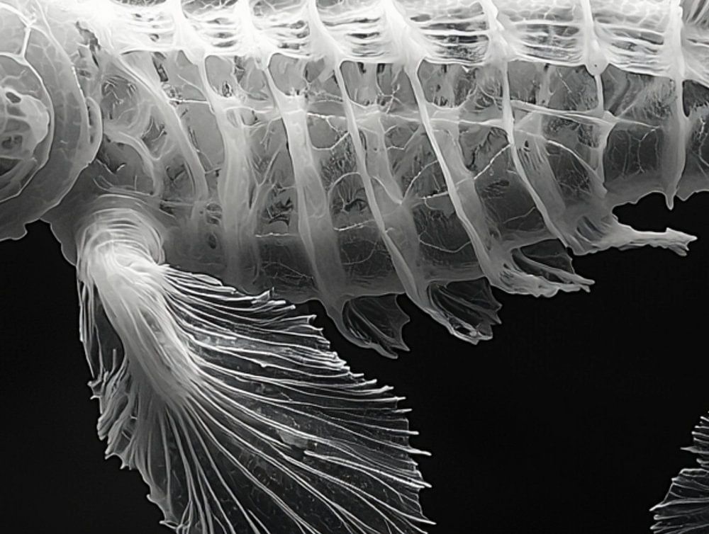 Auf diesem Schwarz-Weiß-Bild schwimmt ein zerbrechliches Seepferdchen lautlos im dunklen Ozean. Seine geschwungene Form und seine zarte Textur leuchten subtil vor dem tiefschwarzen Hintergrund. Jede Flosse und jede Kurve wird durch das Spiel von Licht und Schatten sichtbar. Das Bild strahlt Zerbrechlichkeit, Stille und die Magie des Details aus.