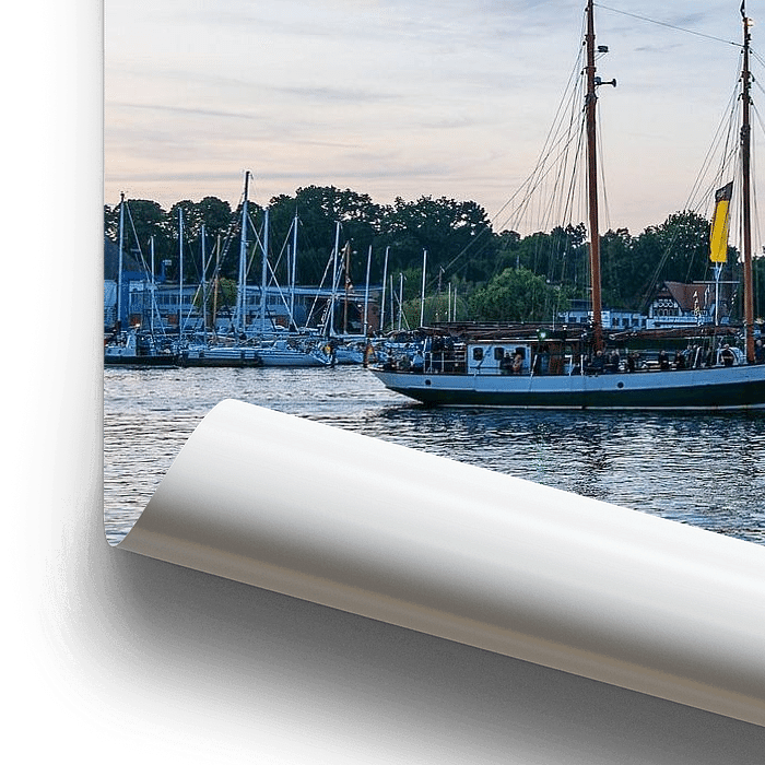 Bestelle das Foto Segelschiffe auf der Warnow am Abend während der Hanse Sail in von Rico Ködder als Reproduktion auf Leinwand, Alu-Dibond, als Poster, Fototapete oder Acrylglasbild.