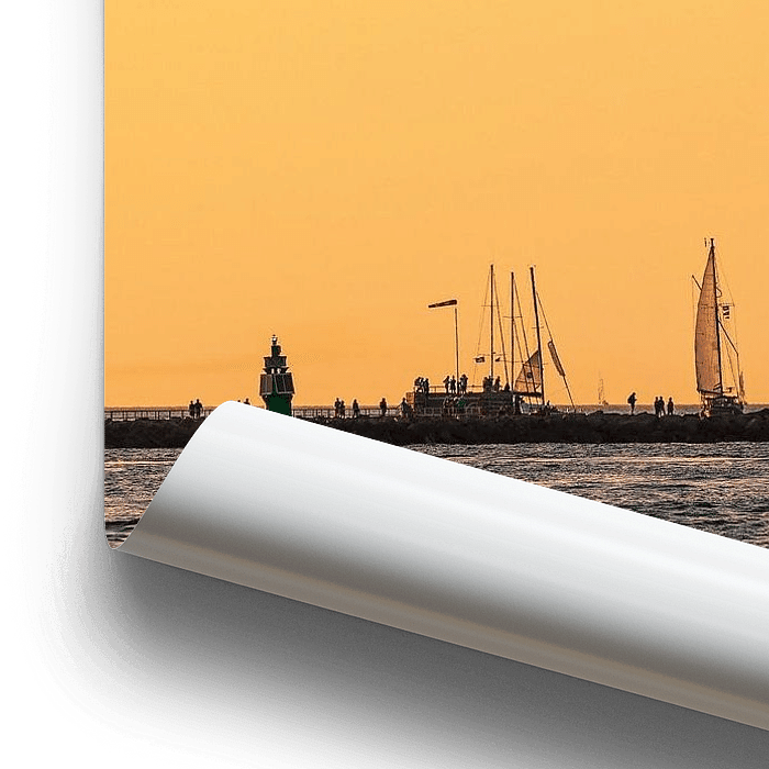 Bestelle das Foto Segelschiffe im Sonnenuntergang auf der Hanse Sail in Rostock von Rico Ködder als Reproduktion auf Leinwand, Alu-Dibond, als Poster, Fototapete oder Acrylglasbild.