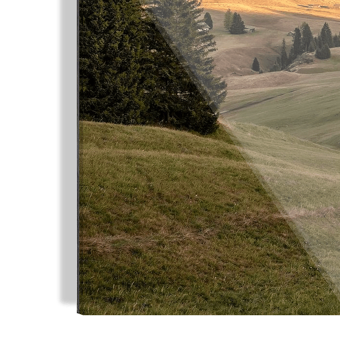 Bestelle dieses Landschafts-Wandbild Seiser Alm Südtirol von Achim Thomae Photography als Reproduktion auf Leinwand, Alu-Dibond, als Poster, Fototapete oder Acrylglasbild.