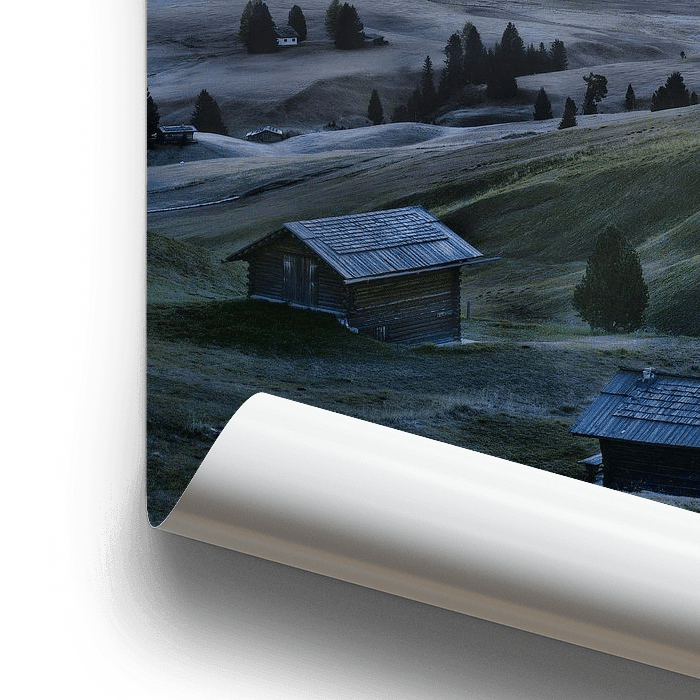 Bestelle dieses Landschafts-Wandbild Seiser Alm in den Dolomiten von Voss Fine Art Fotografie als Reproduktion auf Leinwand, Alu-Dibond, als Poster, Fototapete oder Acrylglasbild.