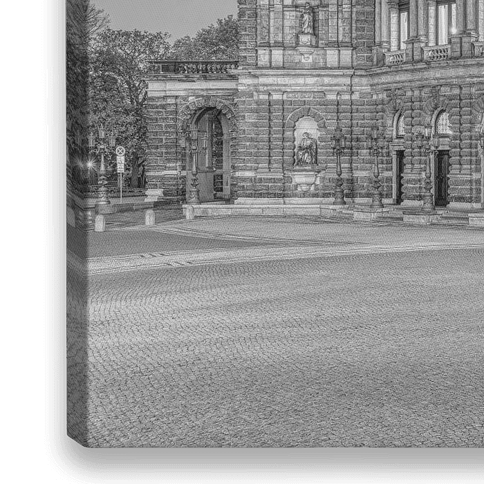 Schwarz-weiß Aufnahme der Semperoper in Dresden.