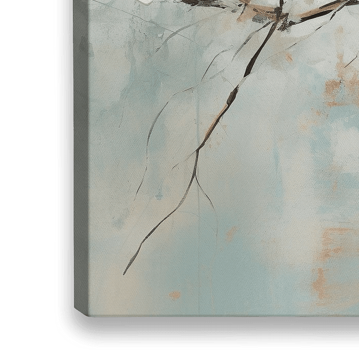 Serene Blossom Branch - Wir sehen ein stimmungsvolles impressionistisches Gemälde, in dessen Mittelpunkt ein blühender Zweig steht. Die Szene ist frisch und leicht, mit einer weichen, fast frühlingshaften Farbpalette aus weißen und gebrochen weißen Tönen in den Blüten, ergänzt durch grüne Blattnuancen und warme Brauntöne in den Zweigen.…