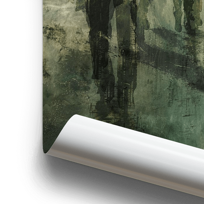 In Shadows in the Mist verschwinden menschliche Figuren in einer nebligen Welt aus Grün und Graublau zu fast schwer fassbaren Schatten. Das Werk lädt dazu ein, stehen zu bleiben - zu schauen, aber vor allem zu fühlen. Wer länger hinschaut, entdeckt Schichten von Zeit, Erinnerung und Stille. Die Schatten scheinen sich zwischen Vergangenheit und Gegenwart zu bewegen, wie Echos von dem, was einmal war oder vielleicht noch kommen wird. Ein faszinierendes Werk für den Denker und Träumer, in dem sich Geheimnis und Kontemplation treffen.