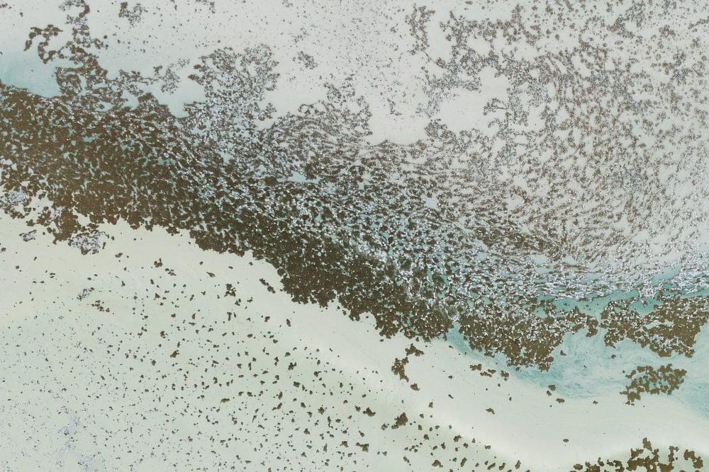 Dieses Werk stellt die Auswirkungen von Reaktionen zwischen gemischten Medien dar. Die Kraft der Chemie zwischen diesen Pigmenten, die von verschiedenen Medien getragen werden, ziehen sich gegenseitig an oder stoßen sich ab, was zu ozean- und riffartigen Formationen führt. Eine gute Komposition und Farbharmonie ist das, was immer angestrebt wird.