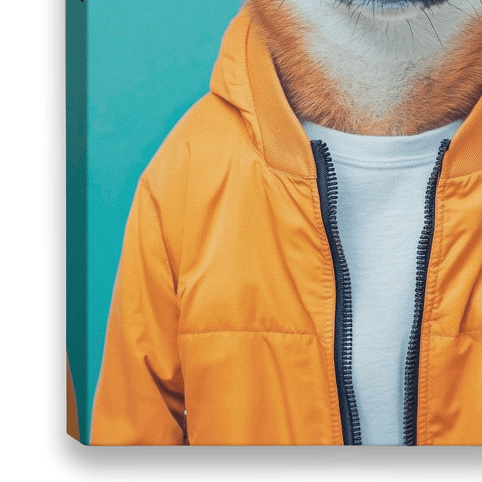 Ein Shiba Inu mit einem charmanten Grinsen und lebhaftem, seidigem Fell strahlt eine unverwechselbare Persönlichkeit aus. In einer stylischen, leuchtend orangefarbenen Jacke, kombiniert mit einem lässigen Weiß, verkörpert er den perfekten Mix aus Coolness und Loyalität. Sein neugieriger Blick verleiht dem Bild eine verspielte Note, die…