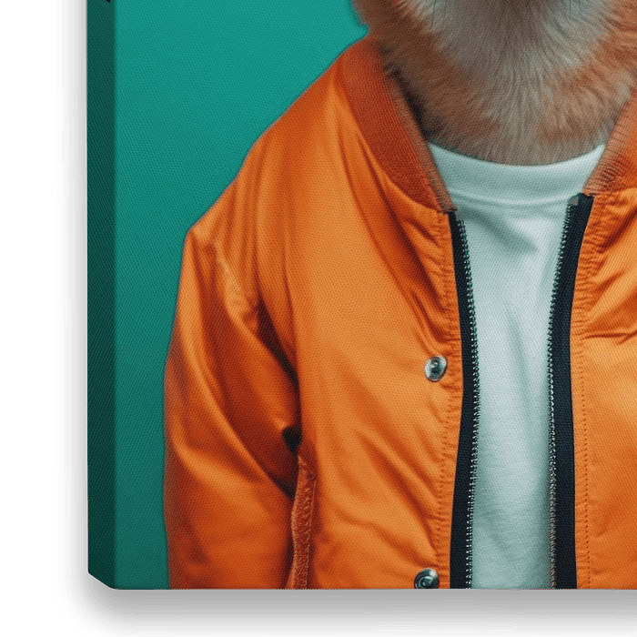 Ein charmanter Shiba Inu mit einem schelmischen Grinsen steht stolz in einer stylischen orangefarbenen Jacke. Sein flauschiges, kupferfarbenes Fell und die aufmerksamen, dreieckigen Ohren strahlen Persönlichkeit aus. Mit einer weißen Bluse darunter und einem coolen Hintergrund scheint er bereit für ein Abenteuer voller Spaß und…
