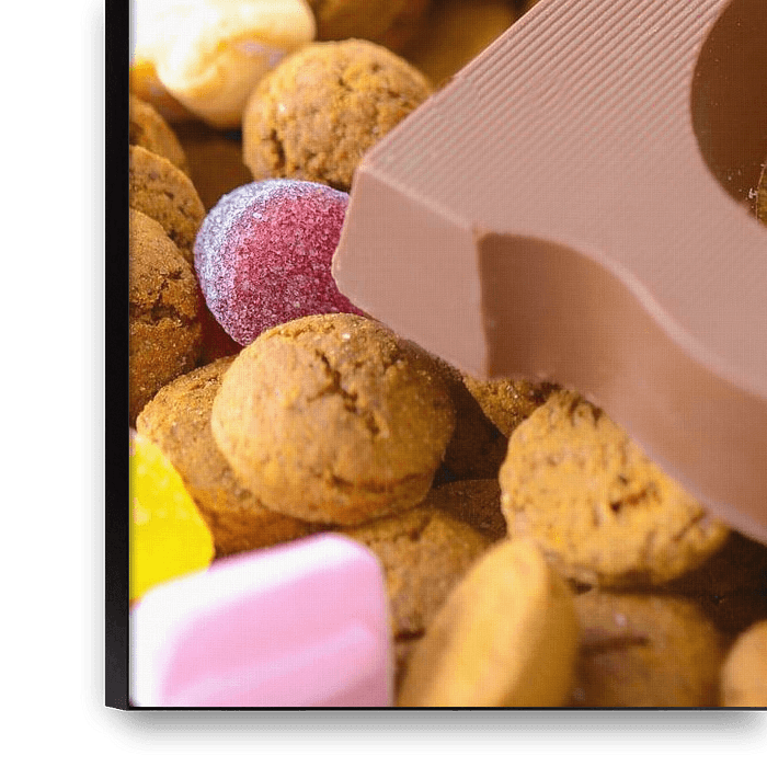 Bestelle dieses moderne Wandbild Sinterklaas pepernoten en strooigoed met chocoladeletter S von Sjoerd van der Wal Fotografie als Reproduktion auf Leinwand, Alu-Dibond, als Poster, Fototapete oder Acrylglasbild.