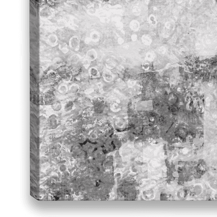 Eine Abstrakte Malerei organisch geometrischen Formen expressionistisch verwischt in Grau mit einer Anmutung Skandinavischer Kunst aus dem Norden Europas.