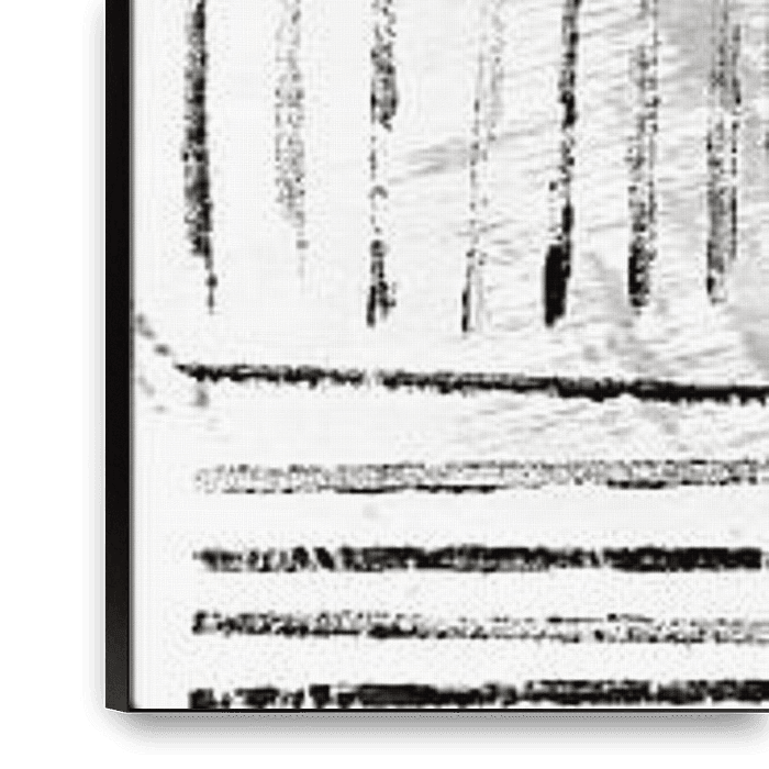 Eine skandinavische abstrakte Malerei geometrischer Pinselstrich Formen im beliebten XXL Panoramabild Format in Schwarz und Weiss Monochrom.