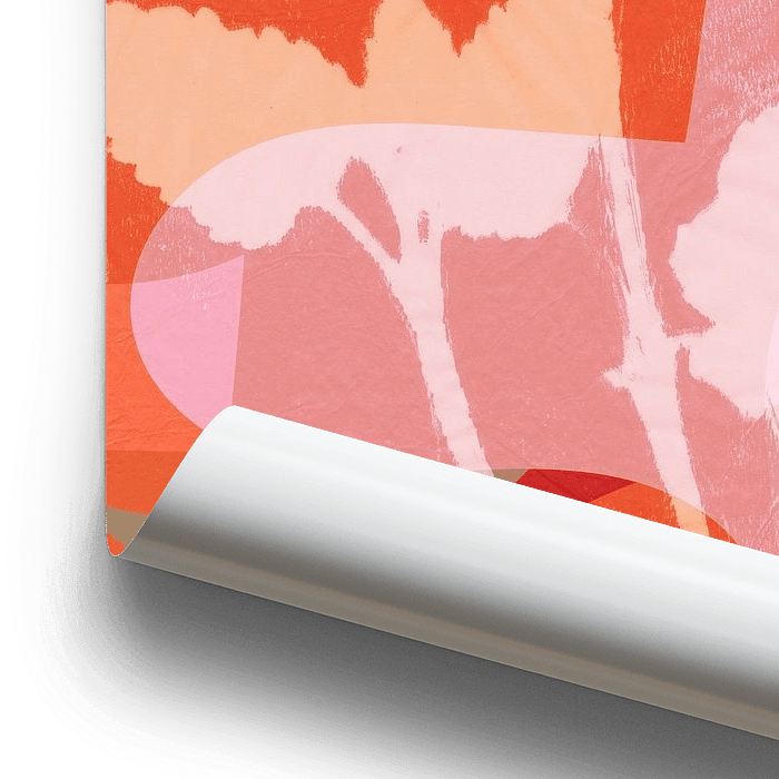 Bestelle dieses Blumen-Wandbild Skandinavische abstrakte Botanik. Blätter in Orange, Rosa, Rot. von Dina Dankers als Reproduktion auf Leinwand, Alu-Dibond, als Poster, Fototapete oder Acrylglasbild.