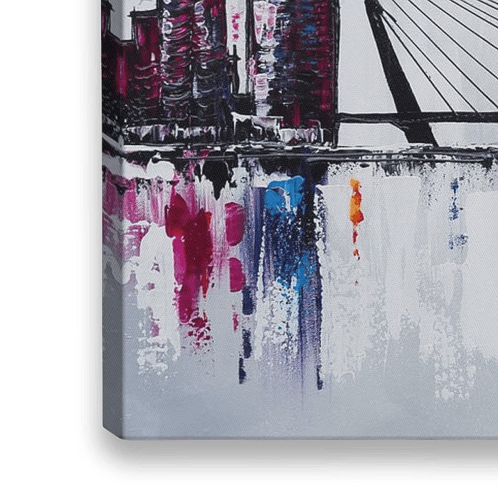 Die Skyline von Rotterdam, einschließlich der berühmten Erasmus-Brücke und Euromast. Wenn Ihr Interieur etwas Farbe verwenden kann, dann ist dieses Gemälde eine gute Wahl!