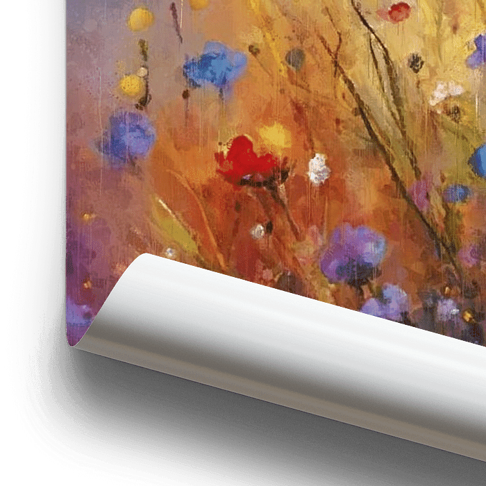 Bestelle dieses Landschafts-Wandbild Sommerfeld mit Wildblumen von Arjen Roos als Reproduktion auf Leinwand, Alu-Dibond, als Poster, Fototapete oder Acrylglasbild.
