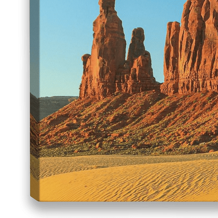 Bestelle das Foto Sonnenaufgang am Totempfahl im Monument Valley von Henk Meijer Photography als Reproduktion auf Leinwand, Alu-Dibond, als Poster, Fototapete oder Acrylglasbild.