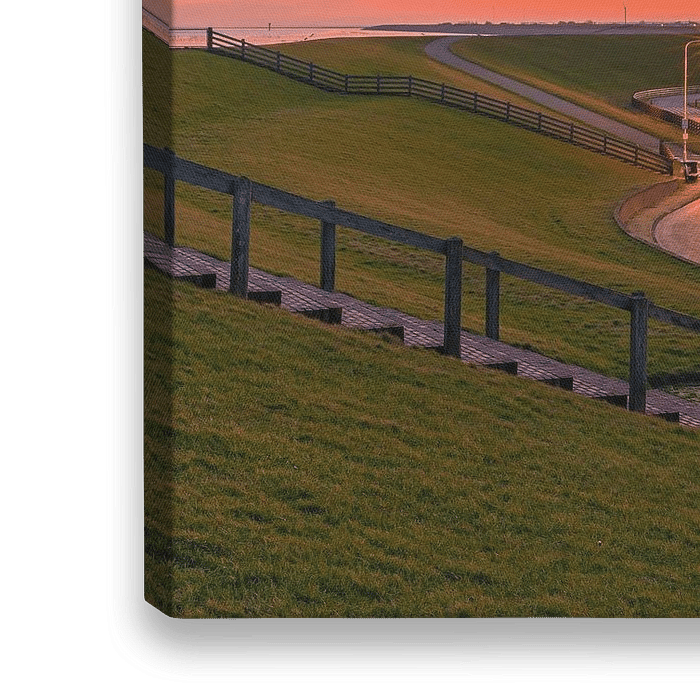 Bestelle das Foto Sonnenaufgang an der Mariakirche in Wierum von Henk Meijer Photography als Reproduktion auf Leinwand, Alu-Dibond, als Poster, Fototapete oder Acrylglasbild.